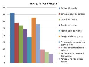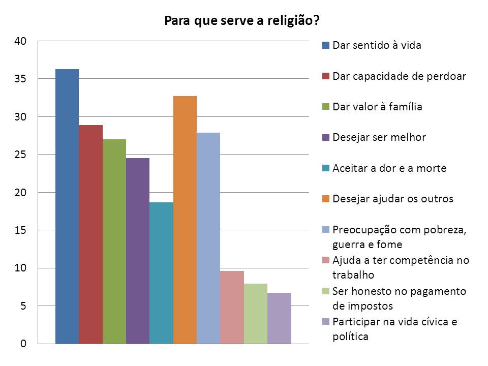 Ao analisarmos as razões para se ser religioso verificámos um dado interessante. As pessoas valorizam muito o bem que a experiência religiosa traz – sentido à vida, valores familiares, lidar com a dor, ajuda ao próximo – mas, identificam-se muito pouco com a prática dos valores morais que professam, como ser honesto e competente no emprego, pagamento de impostos, e vida cívica. Para a maioria, é boa a respeitabilidade que a prática religiosa pode trazer, mas, também é conveniente que fique só pela superfície, sem mudança de coração, sem arrependimento, sem confissão, sem abandono de pecados. (Mt.23:23-28)