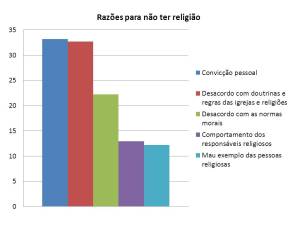 Estes dados vêm ao encontro dos motivos apresentados para não ter religião. As pessoas não querem ter uma experiência com Deus, porque isso as “obrigaria” a rever os seus valores morais e as regras de conduta. Essa escolha consciente por parte de um número crescente de portugueses, acrescida da prática de fé quase inexistente por uma grande parte dos ditos religiosos, explica a degradação dos valores a que assistimos nos últimos anos – aprovação da Lei do Aborto, Lei do Casamento Homossexual, Lei da Adopção por casais homossexuais (num futuro não muito distante), aumento da taxa divórcios, famílias mono-parentais, aumento do consumo álcool nos jovens, idade de iniciação sexual cada vez mais baixa (13-15 anos), etc. Deus dá-nos liberdade para fazermos as nossas escolhas, mas também nos alerta para o facto de que colheremos o fruto delas. (Rm.1:18-32)