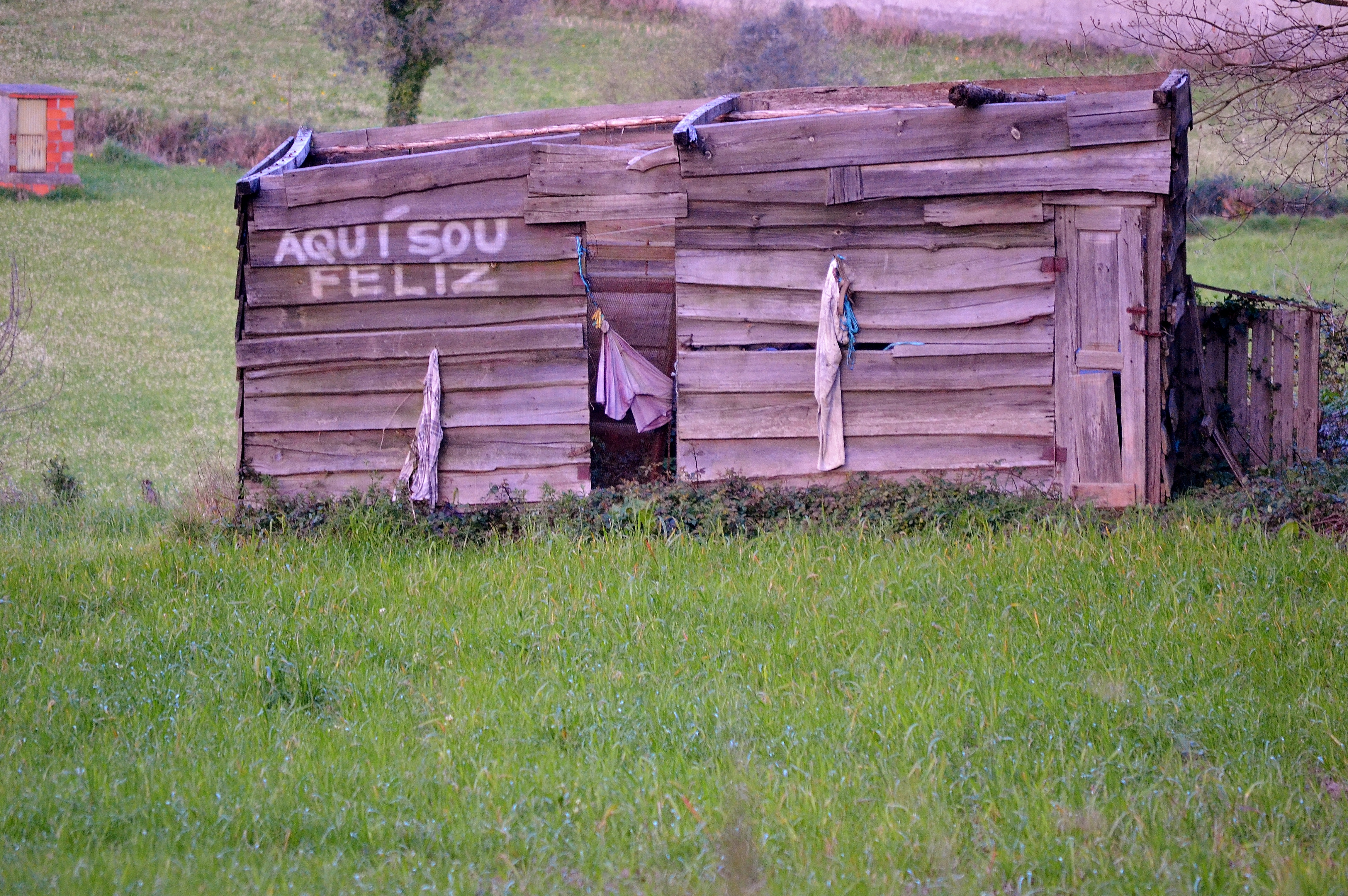 Durante os últimos anos passei neste lugar diariamente em viagem para o emprego. Todos os dias este barracão “pregava” para mim. Aquelas três palavras nunca escapavam aos meus olhos e atingiam como uma seta um coração teimosamente insatisfeito. A felicidade, conforme a concebemos, está em pleno desacordo com o cenário. É um paradoxo gritante para os nossos corações obcecados com segurança, sucesso, prazer e dinheiro.